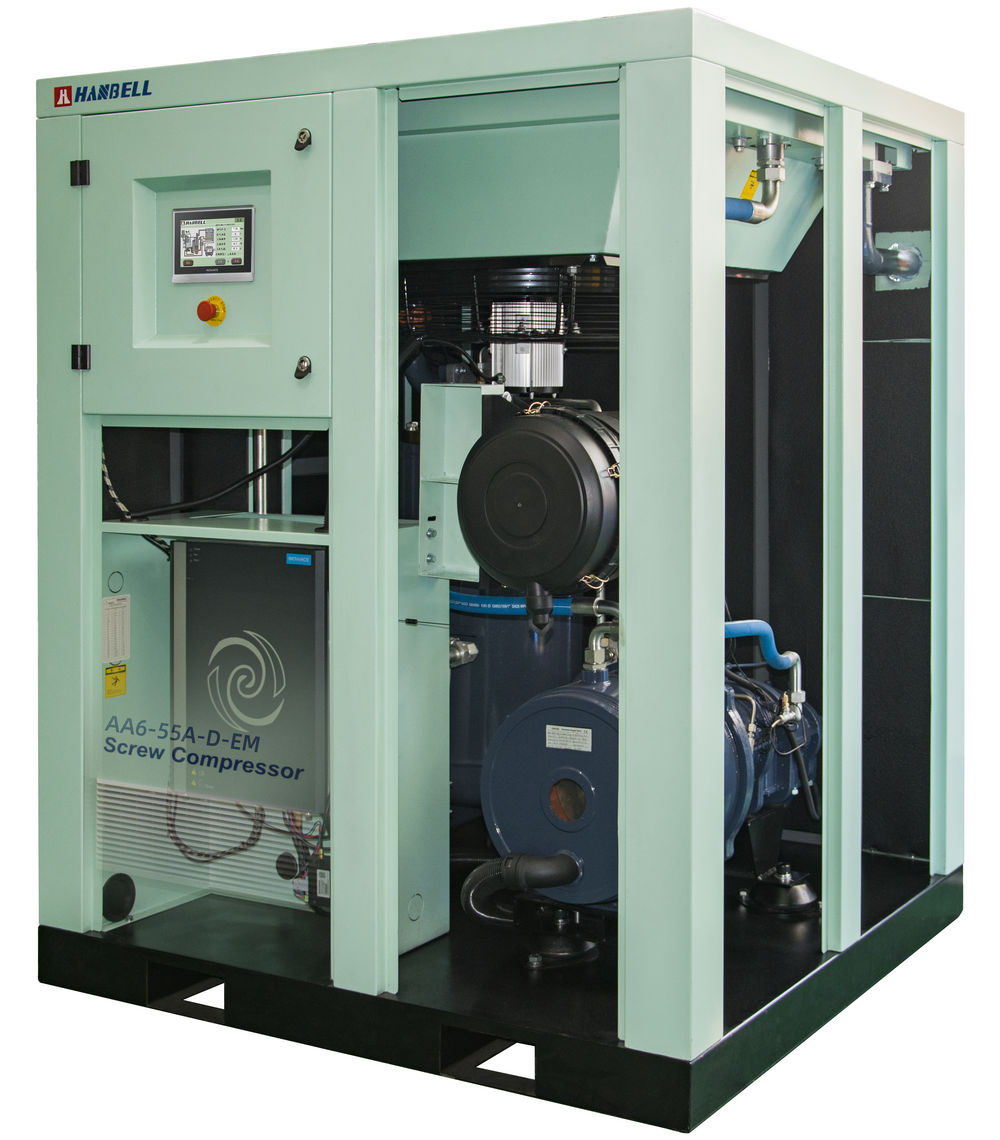 Hanbell has launched a new air compressor: AA6-D-EM series integrated horizontal tandem double stage permanent magnet variable frequency air compressor.