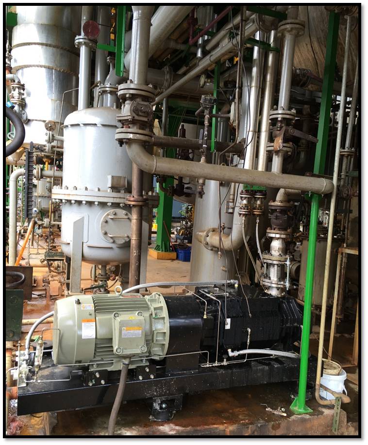 A chemical enterprise originally used the water ring pump. After using our dry screw pump, the economic benefits come from two aspects: organic solvent recovery and water saving.