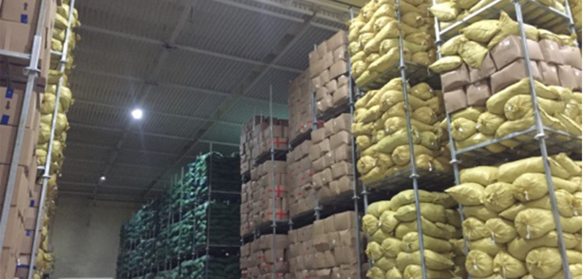 食物厂制冷系统配套机组项目,制冷主机接纳AG旗舰厅精机单机双级变频压缩机LT-S-V一台和AG旗舰厅精机通例双级冷冻压缩机LT-S一台并联,4间冷库,设计温度:-20℃,面积为1015m2,容积8629m3,贮存吨位2071t